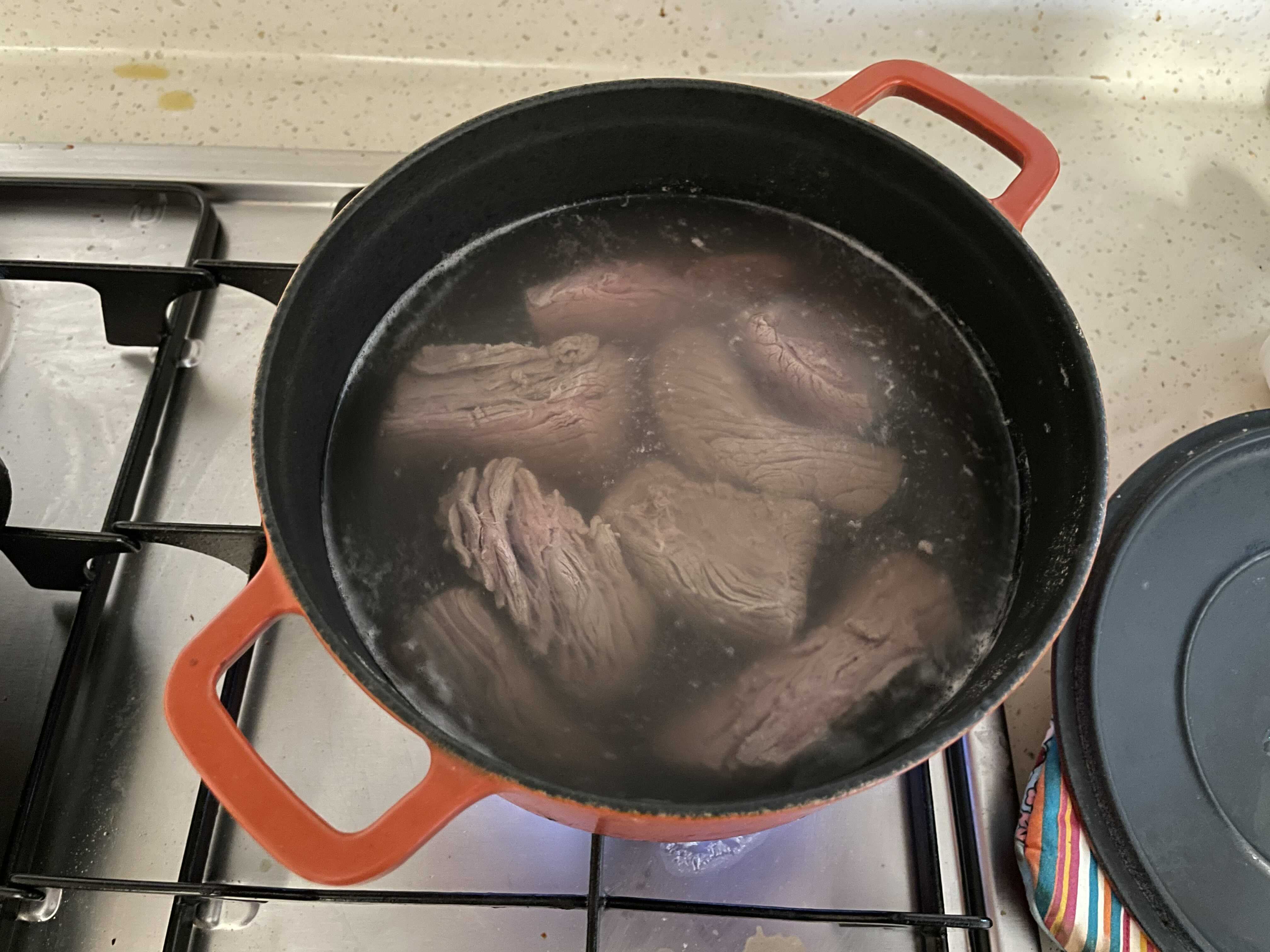 3. 삶은 육수는 거품을 걷어두고 따로 덜어둔다.
