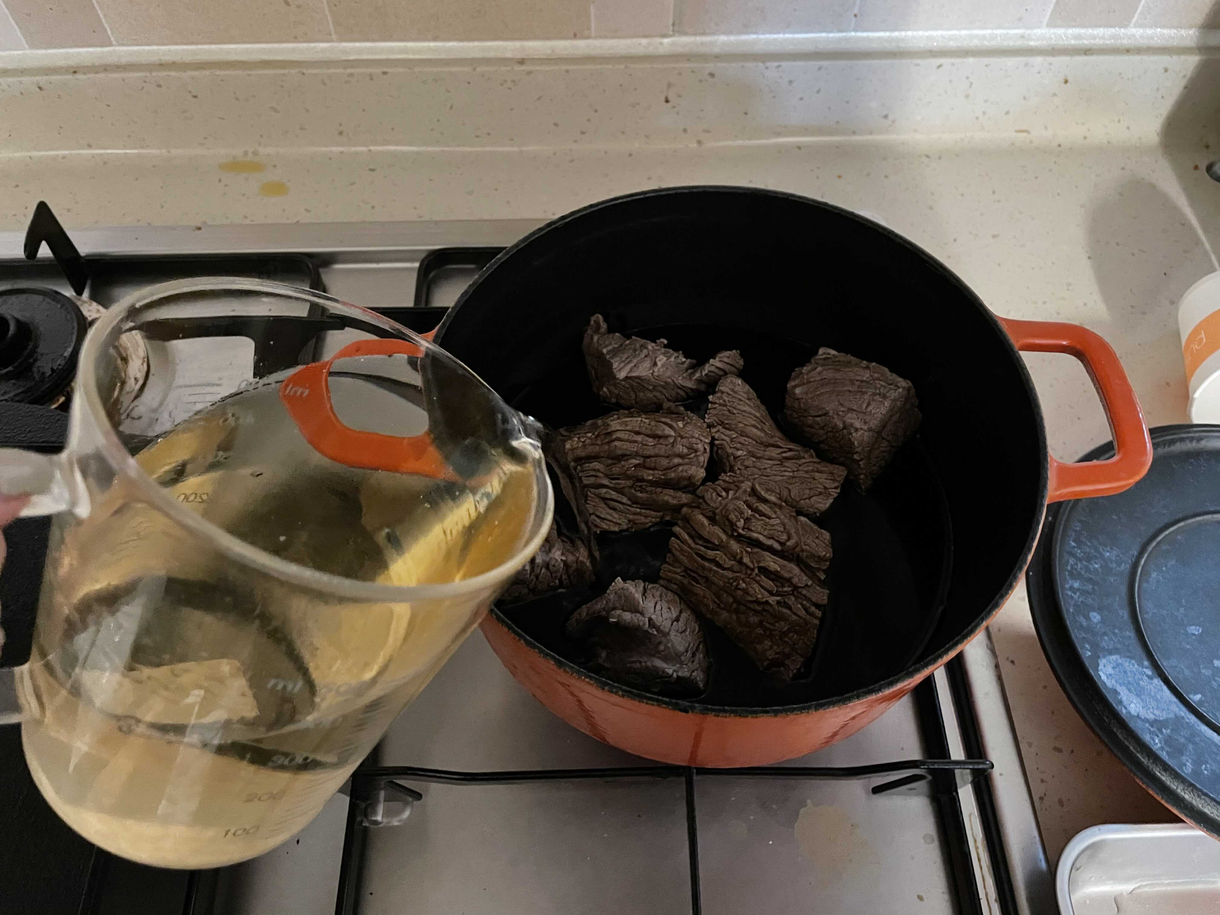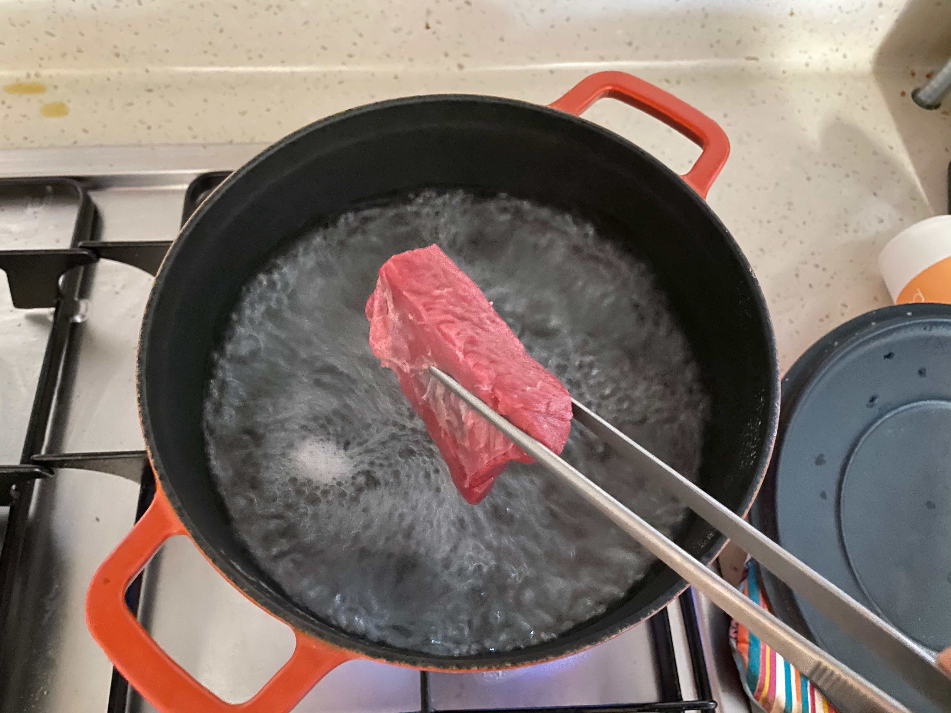 4. 삶은 고기에 재료를 넣는다.