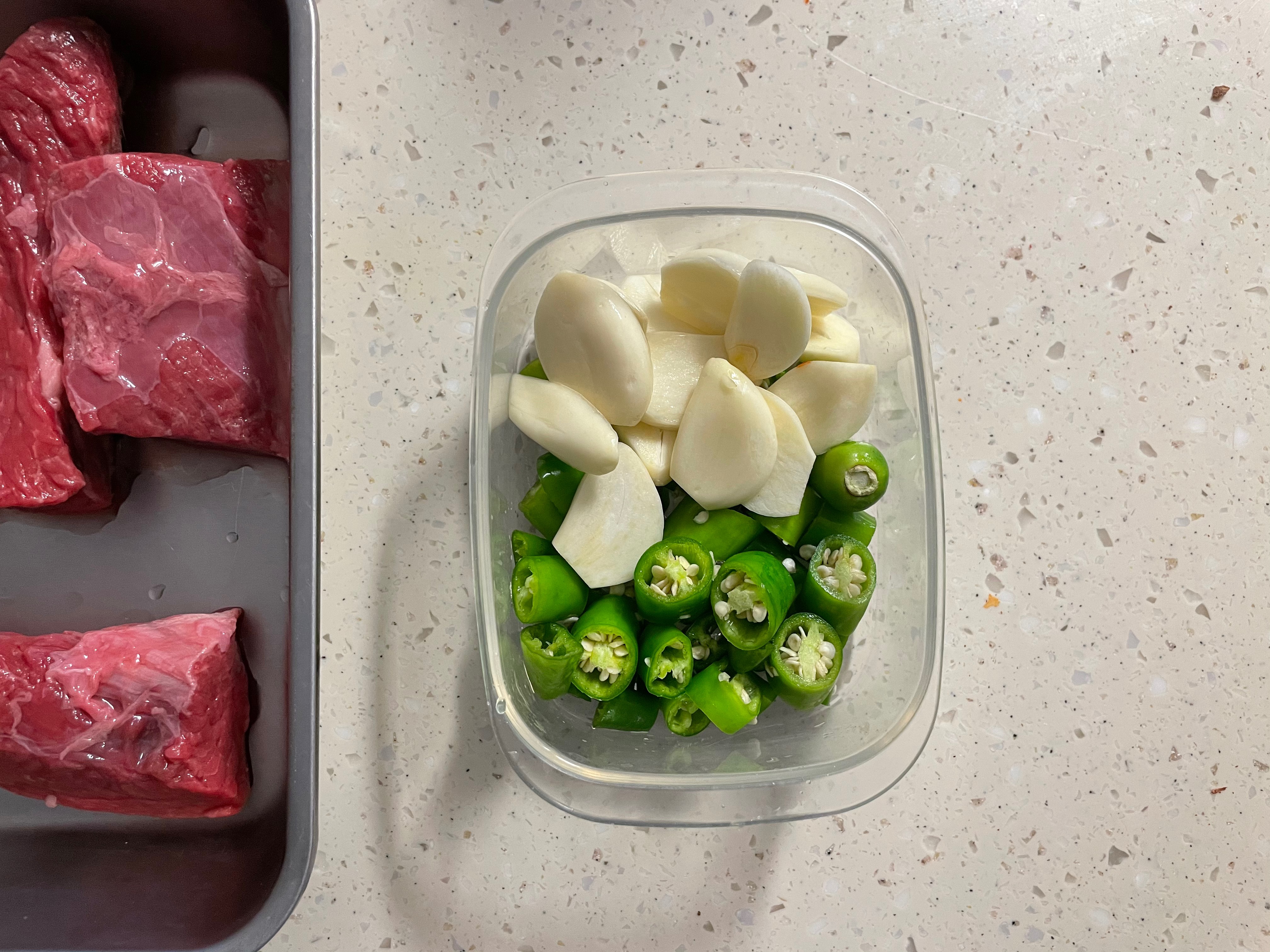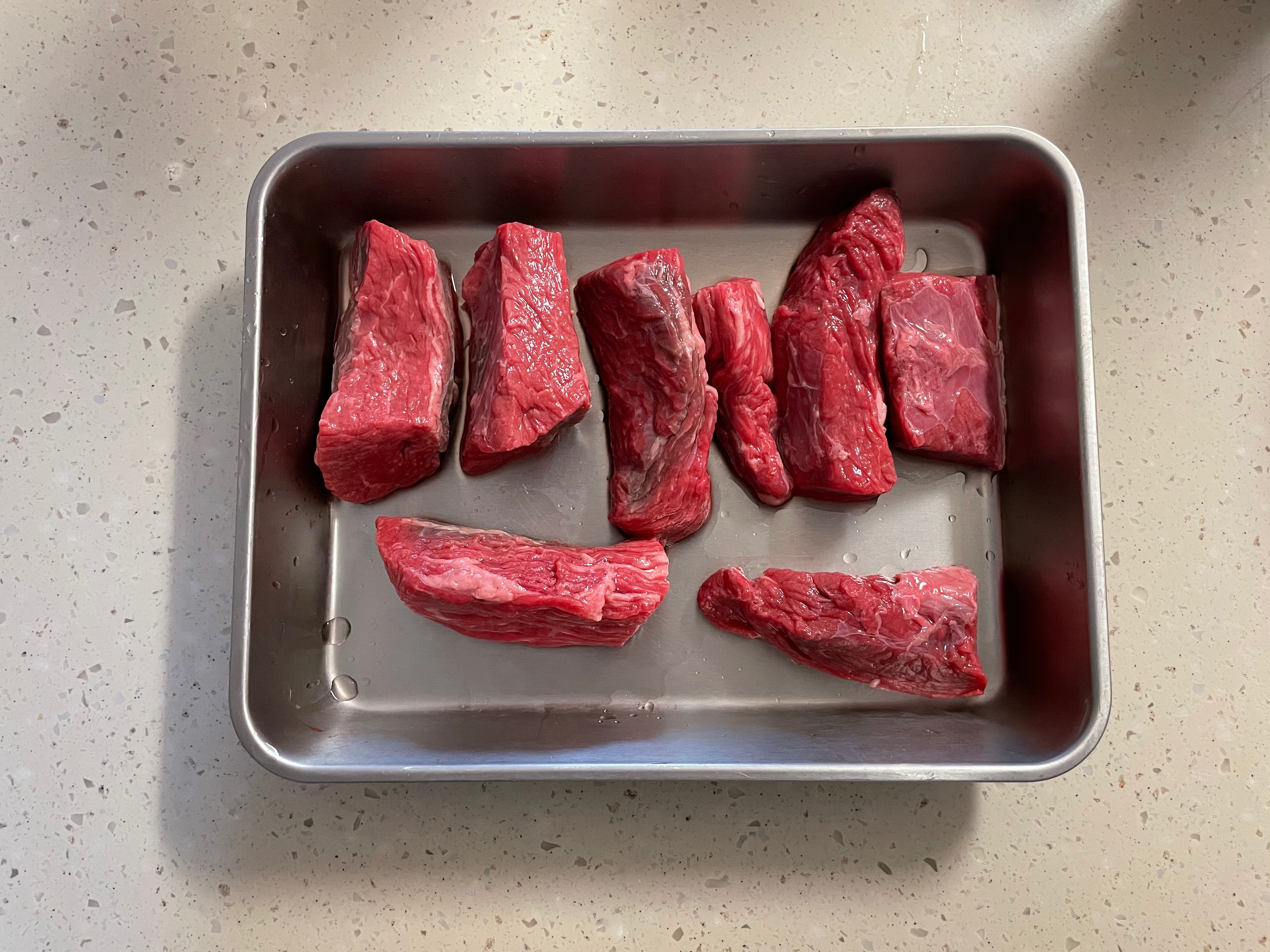1. 소고기는 물에 씻어서 큼직하게 썰어둔다.