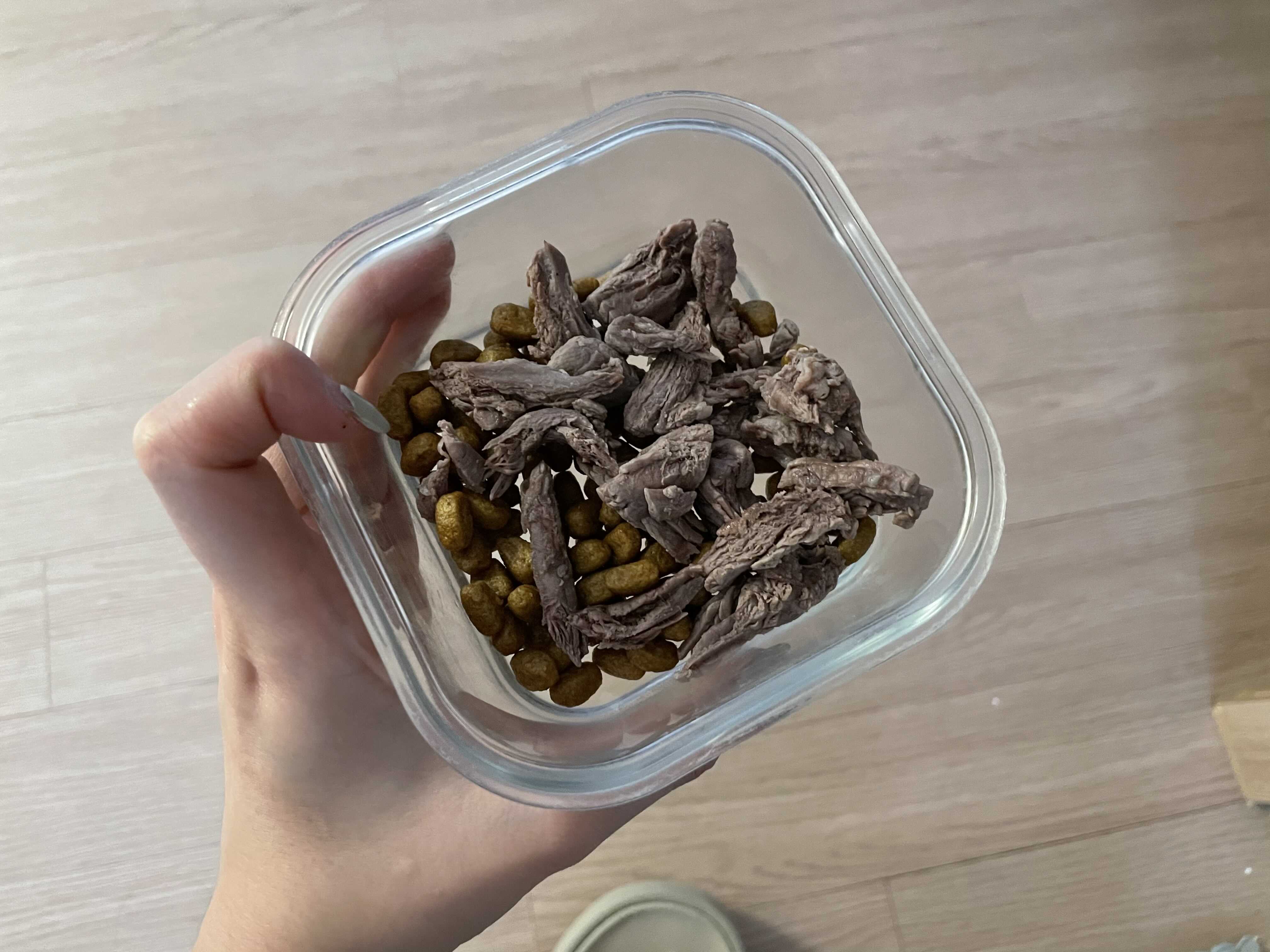 (고기 한점은 우리꼭지꺼 ! 식혀서 찢어주기)