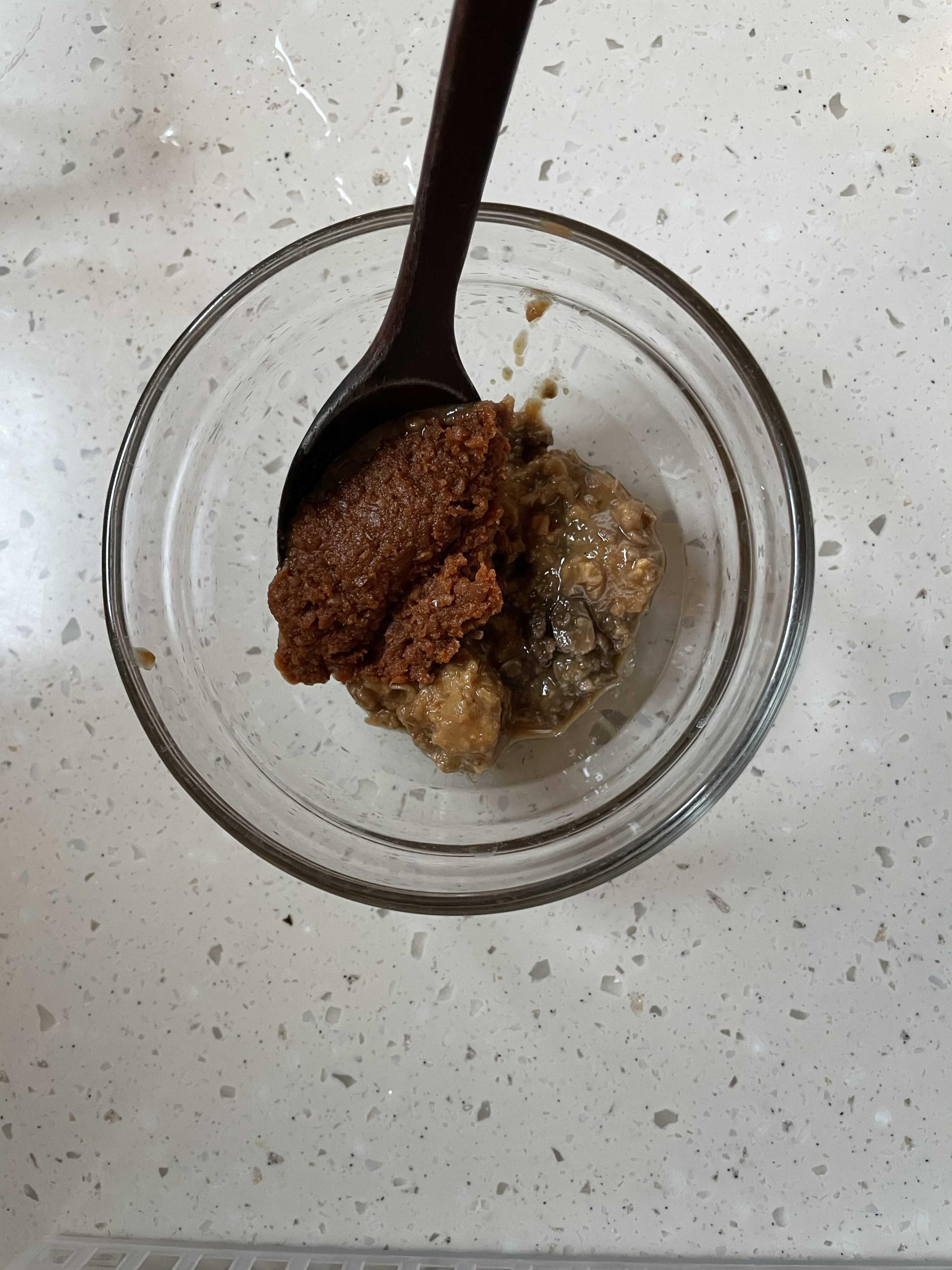 2. 된장 준비 _ 집된장 1스푼, 마트된장 1스푼 섞어 먹는다.
