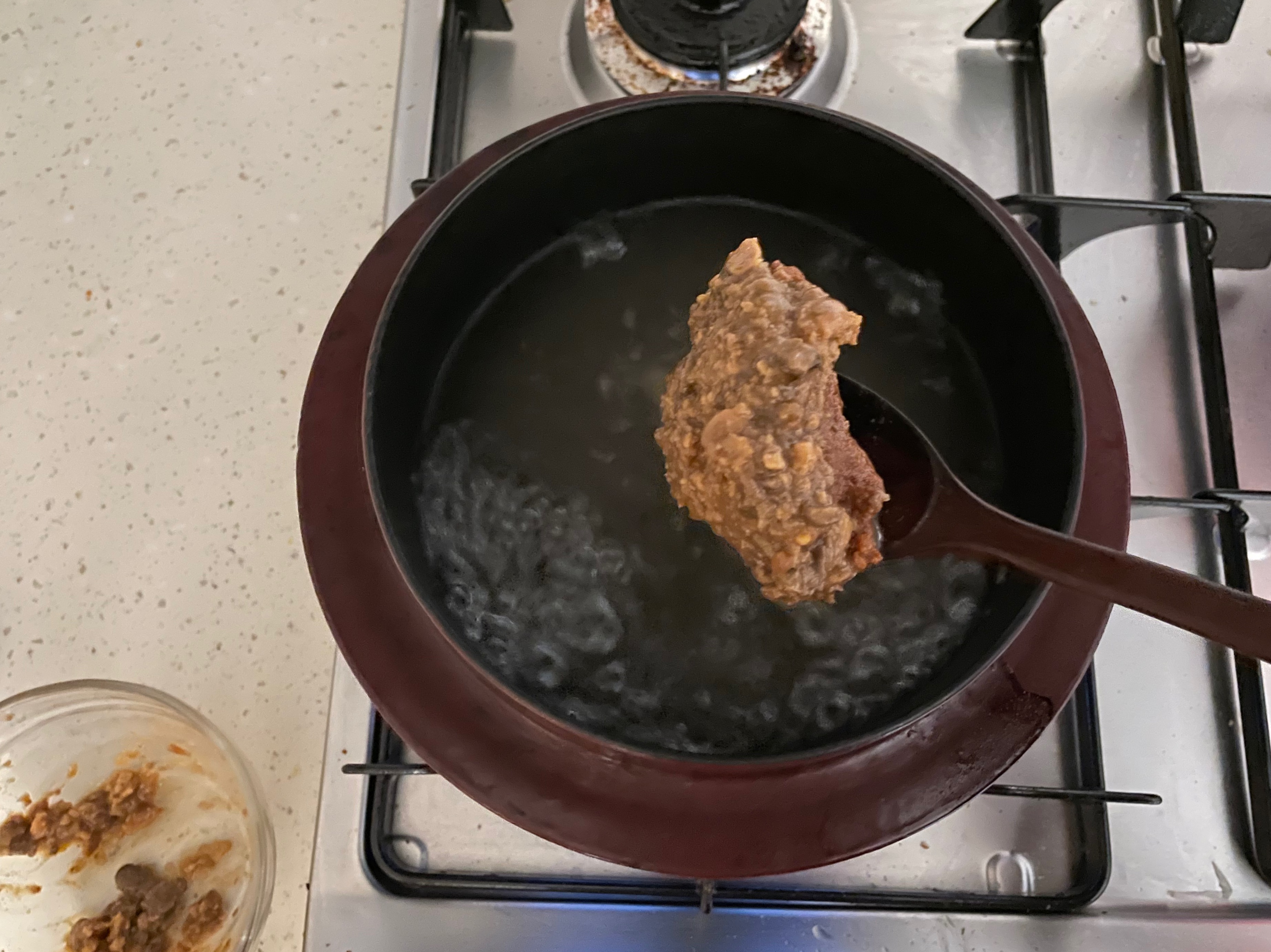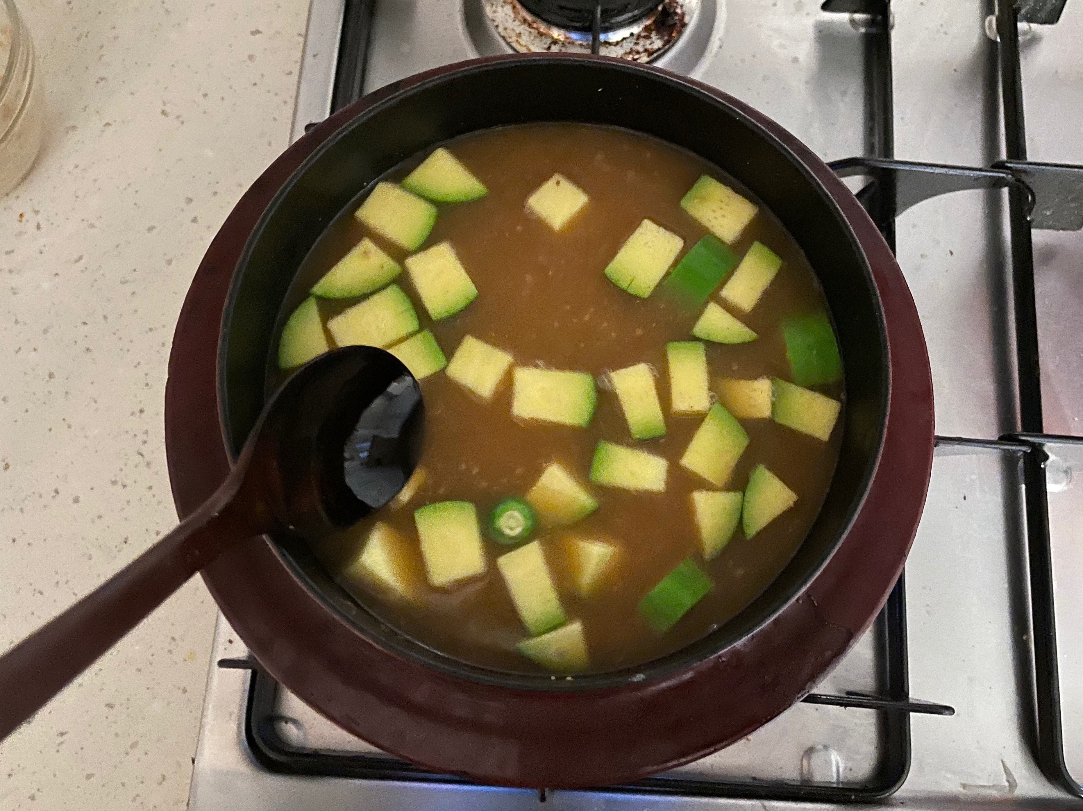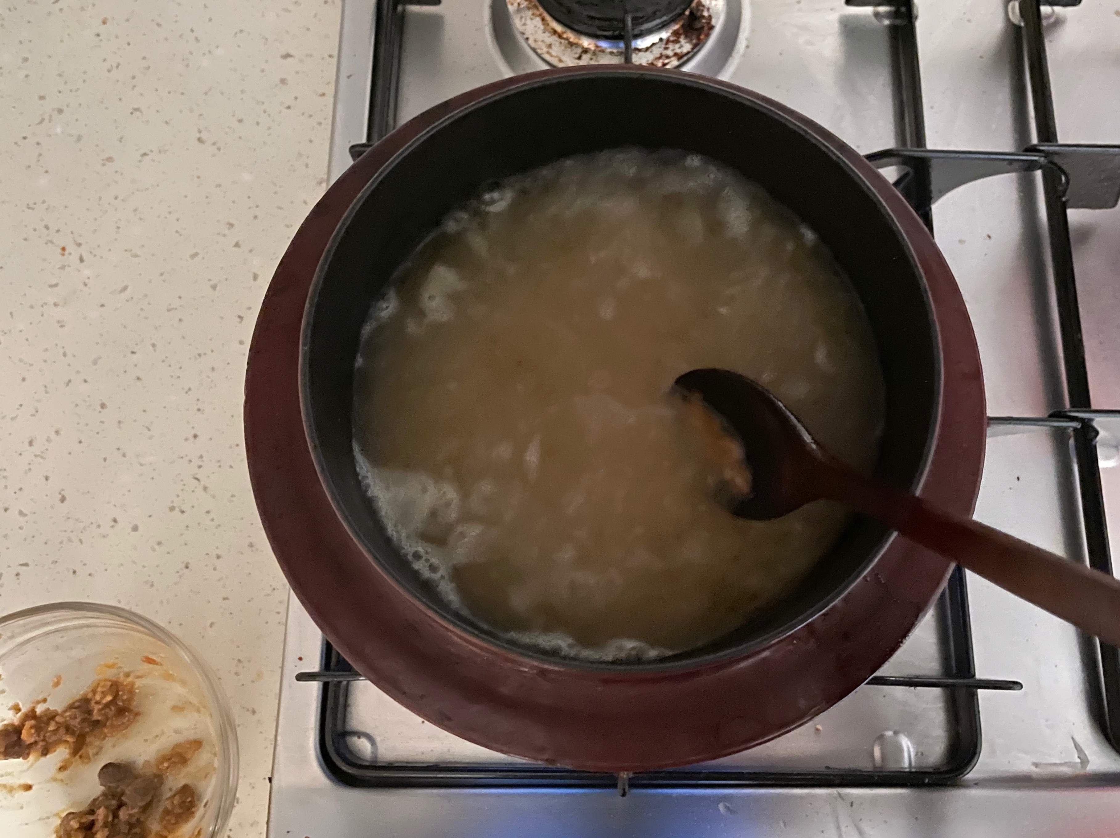 3. 장조림하려고 삶았던 소고기육수를 끓을때 된장을 풀어준다. (평소엔 고기육수보단 보통 멸치육수를 사용한다. )