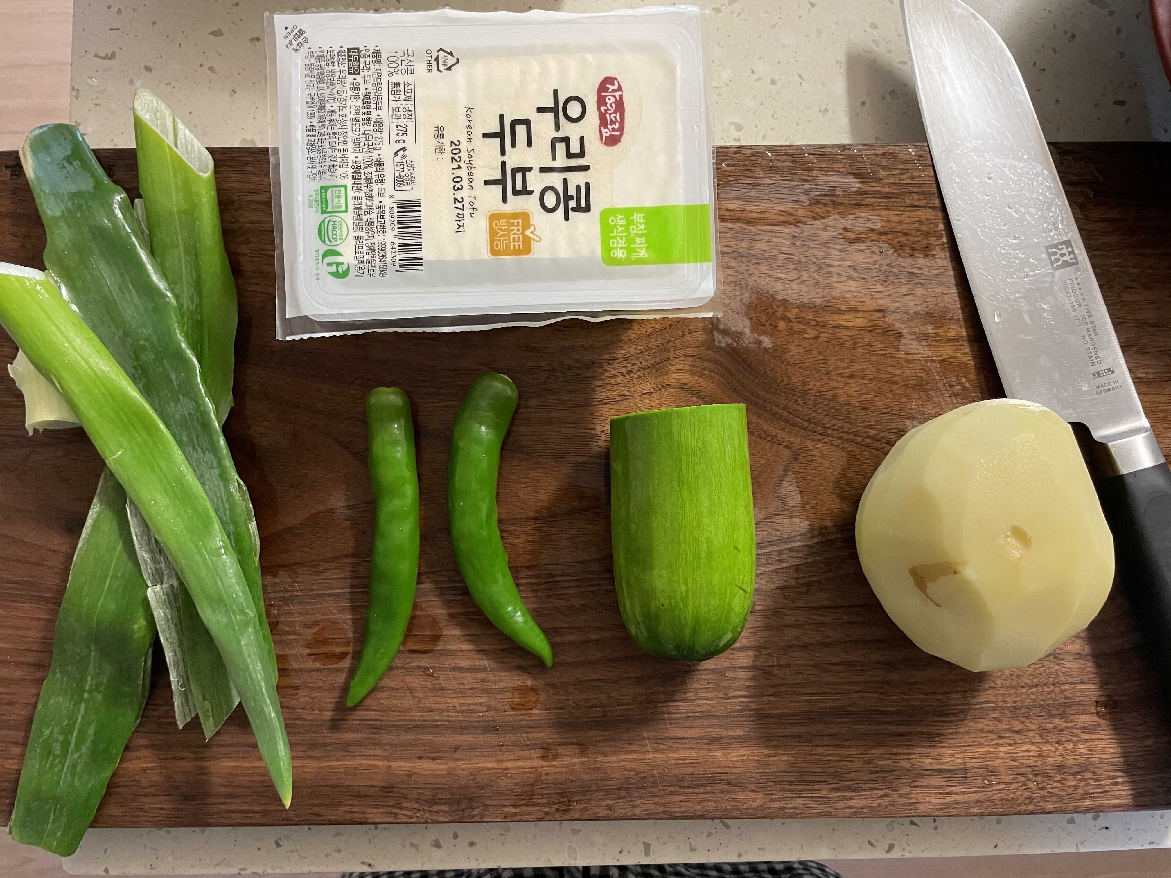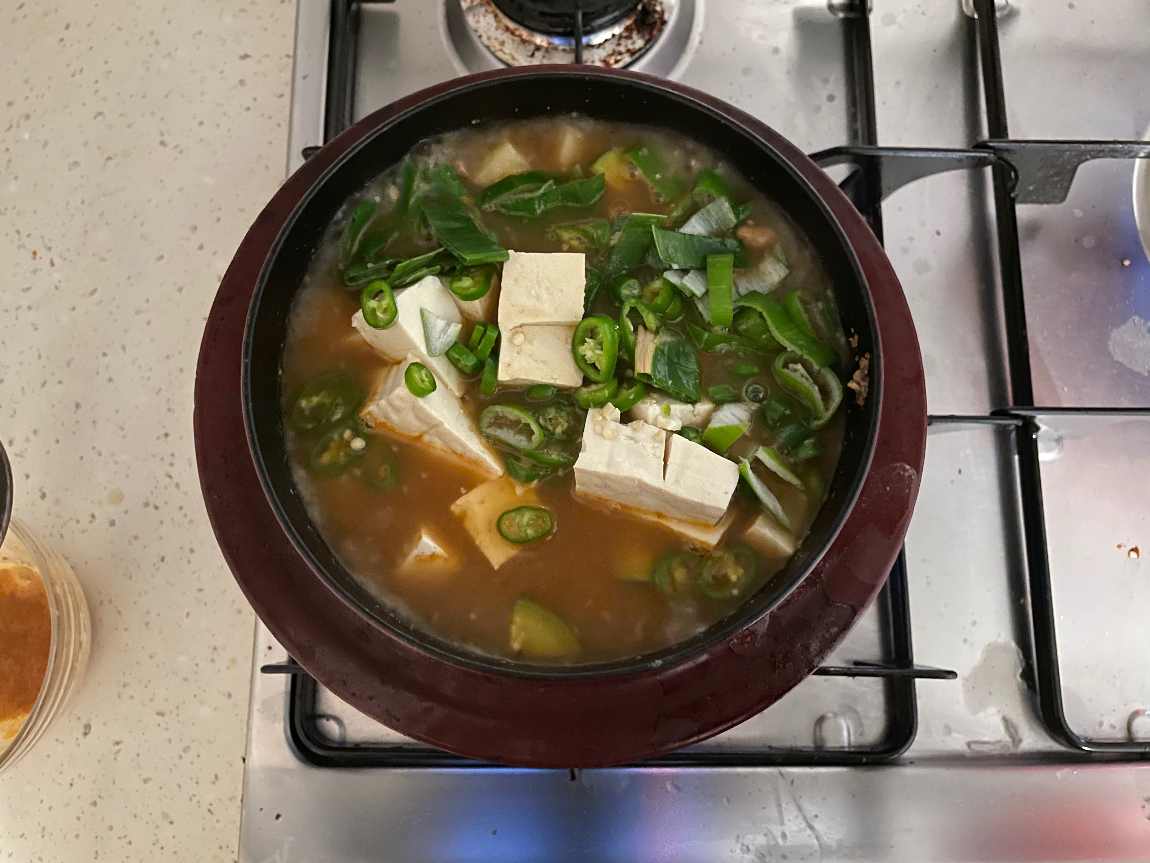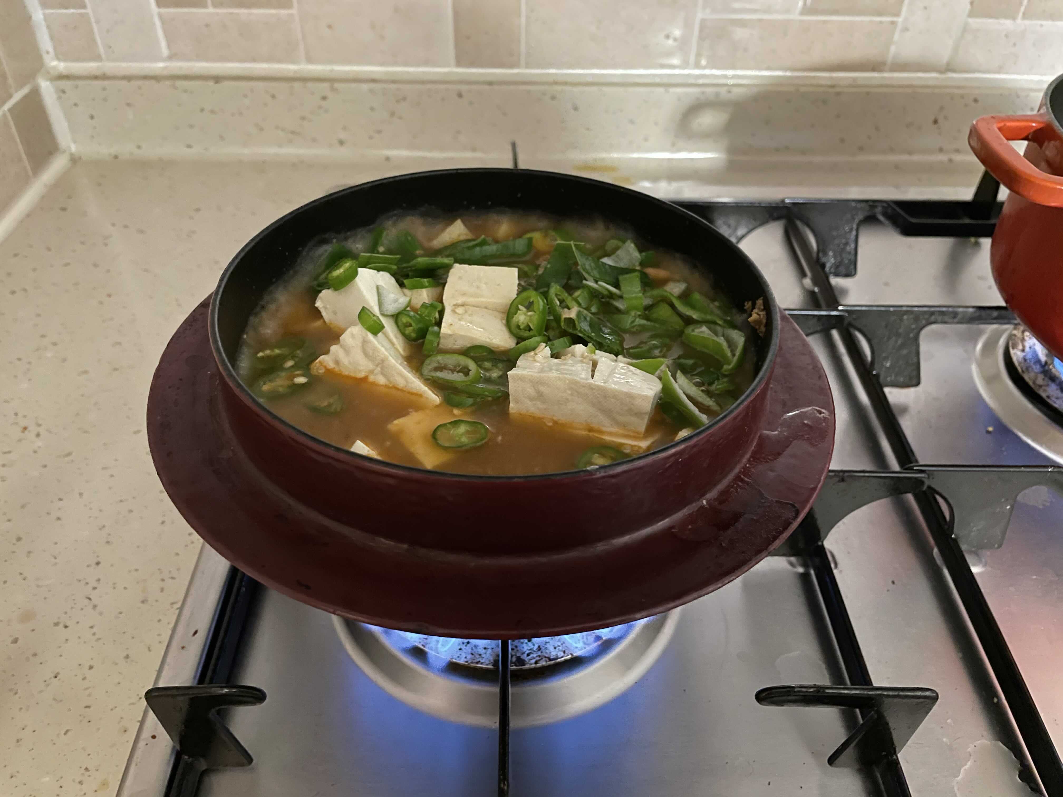 재료는 다 필요없고 두부와 된장 고추만 있어도 칼칼한 된장을 끓일 수 있다. 된장만으로 간을 하니 입맛에 맞는 양과 된장 종류를 찾으면 된다. 우리집은 어머님이 주신 집된장에 파는 된장을 반반 섞으니 딱이다. 생각보다 쉬운 된장찌개!
