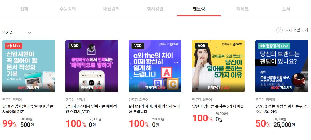 또 그로우에서는 #명사강연, #멘토링 강의 #재테크 강의 등 비대면/온라인으로 시간, 장소에 구애받지 않고 질좋은 강연들이 많이 있으니까 활용해보아도 좋을 것이다.