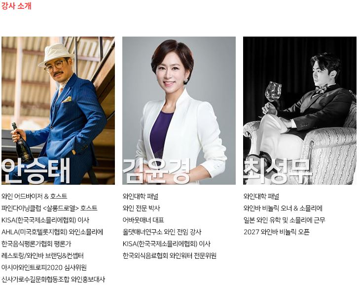 우리나라에서 유명하신 소믈리에, 강사분들이 강의를 해주고 신뢰가 가는 강의였다.