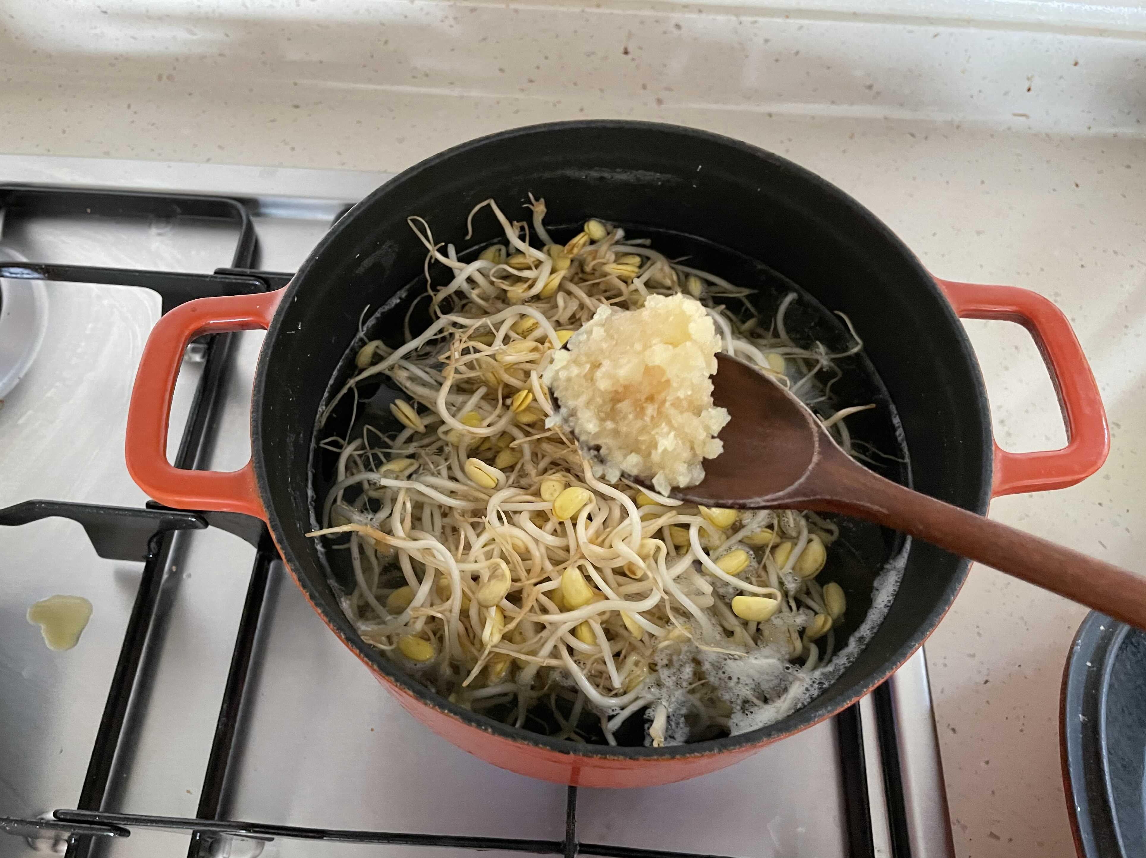 4. 콩나물이 어느정도 익으면 다진마늘 1큰술 넣어준다.