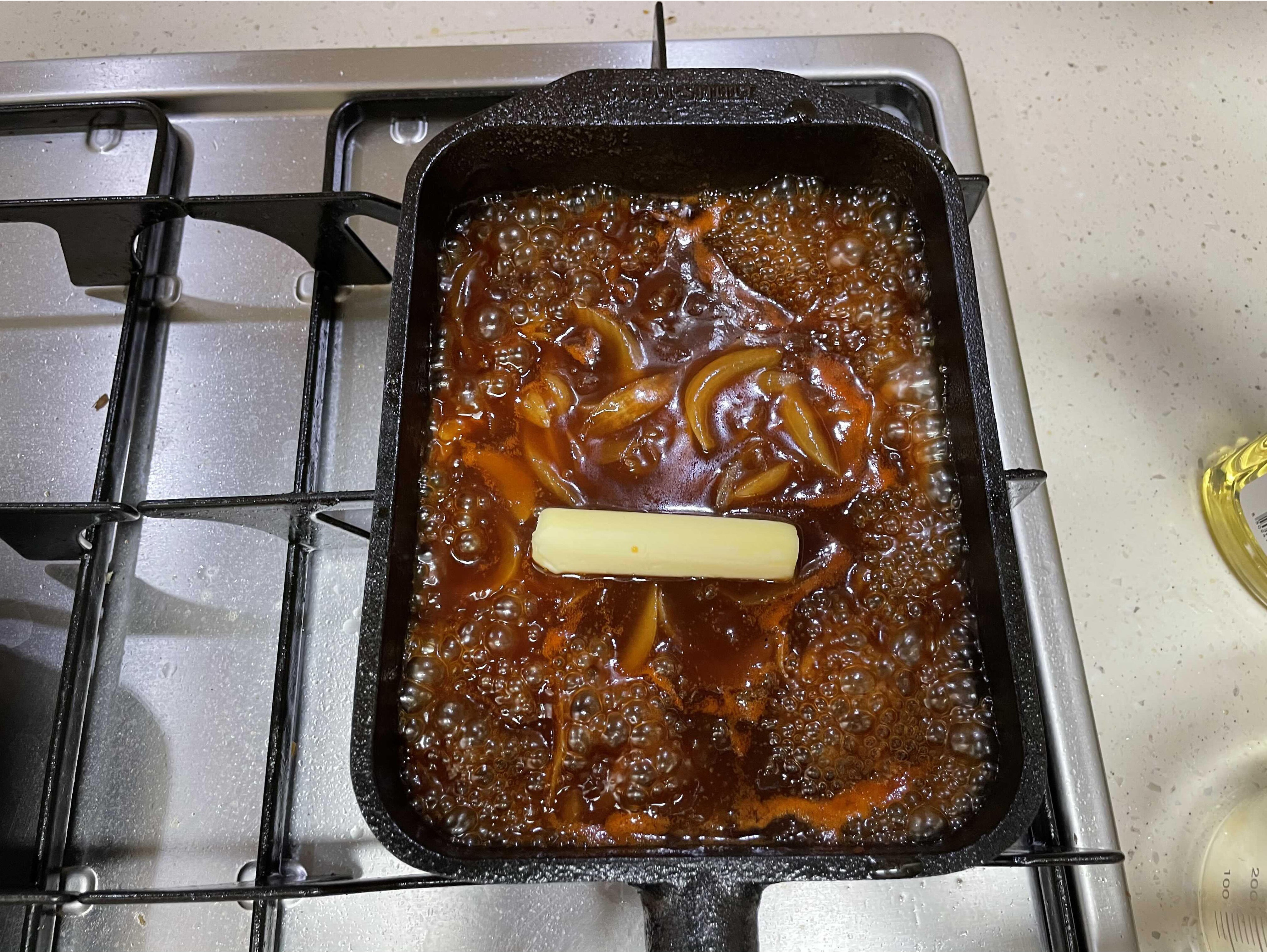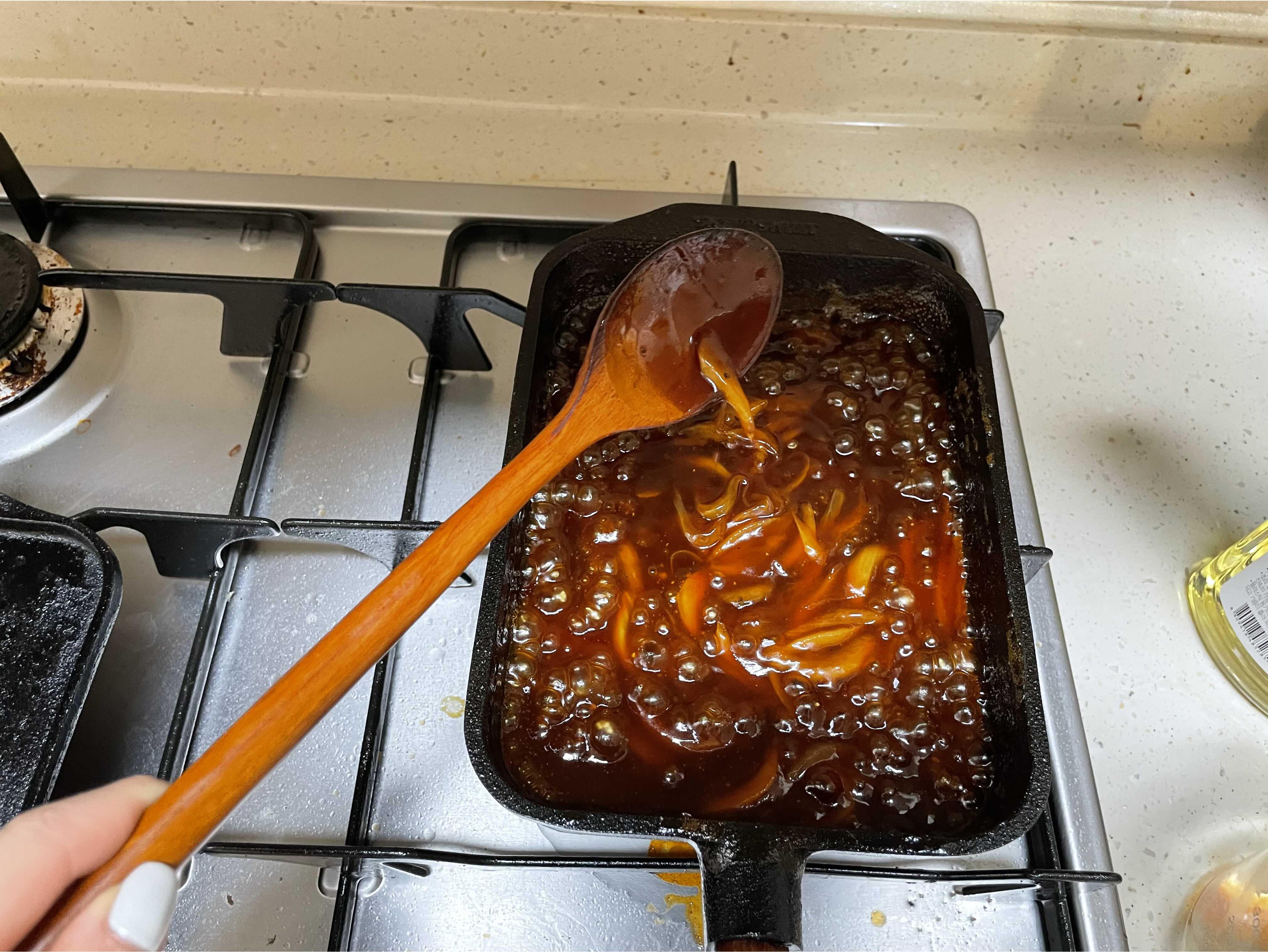 4. 반정도 졸여지면 버터를 넣고 버터가 녹을때까지 젓다가 걸쭉해질때까지 약불로 졸인다.