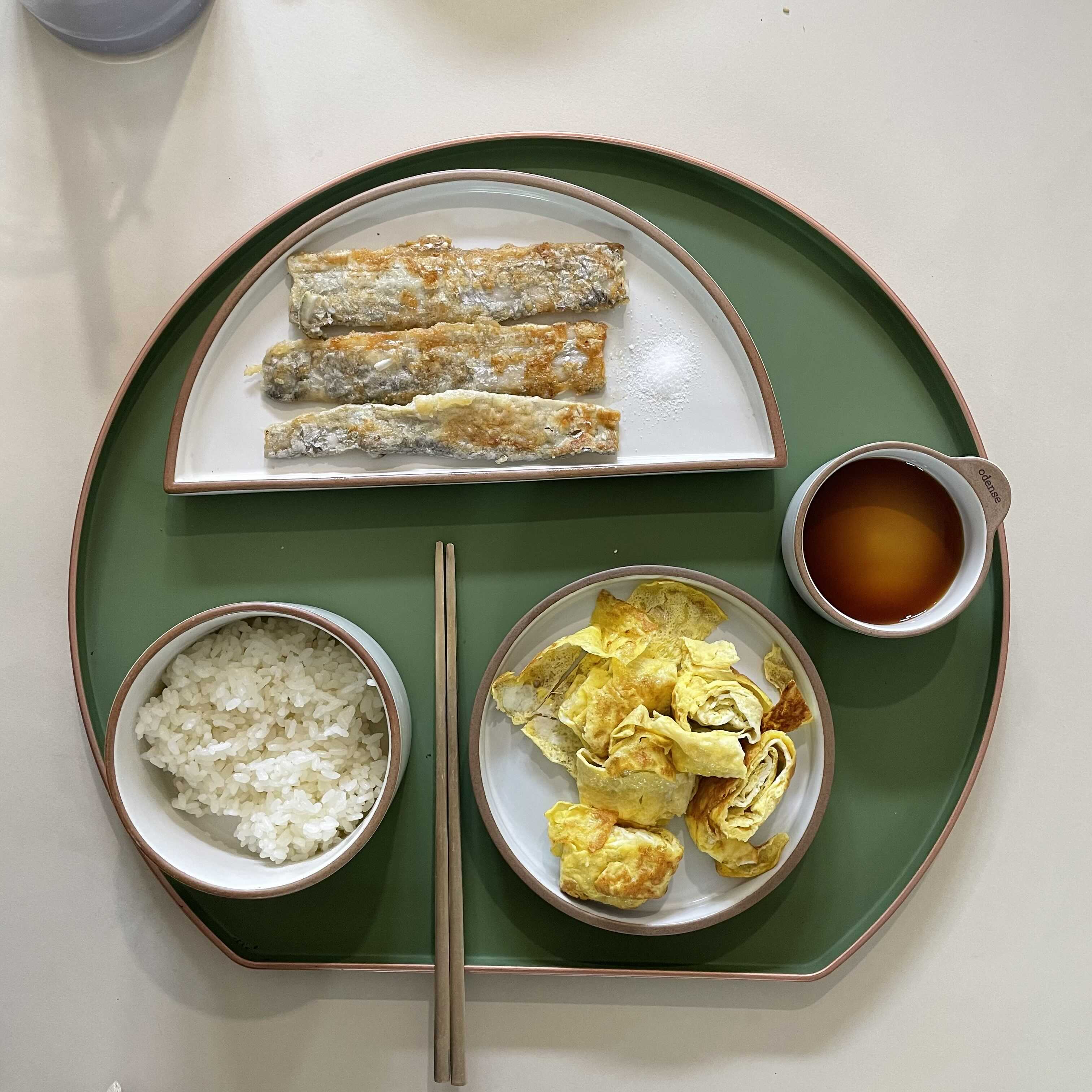 17:45 순살갈치구이, 계란말이, 쌀밥, 소금