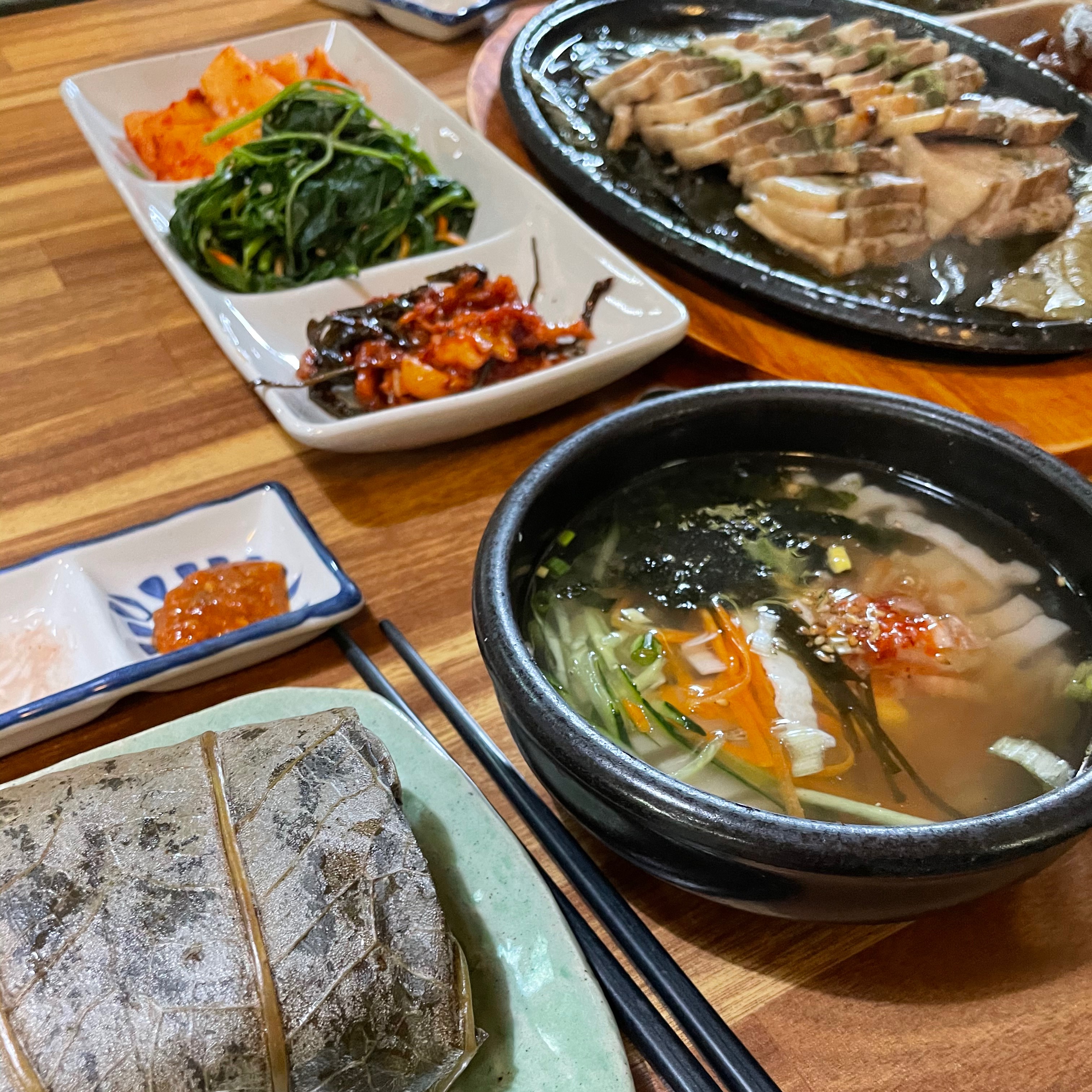 12:00 연잎밥정식(연잎밥, 메밀묵국, 수육, 나물반찬들)