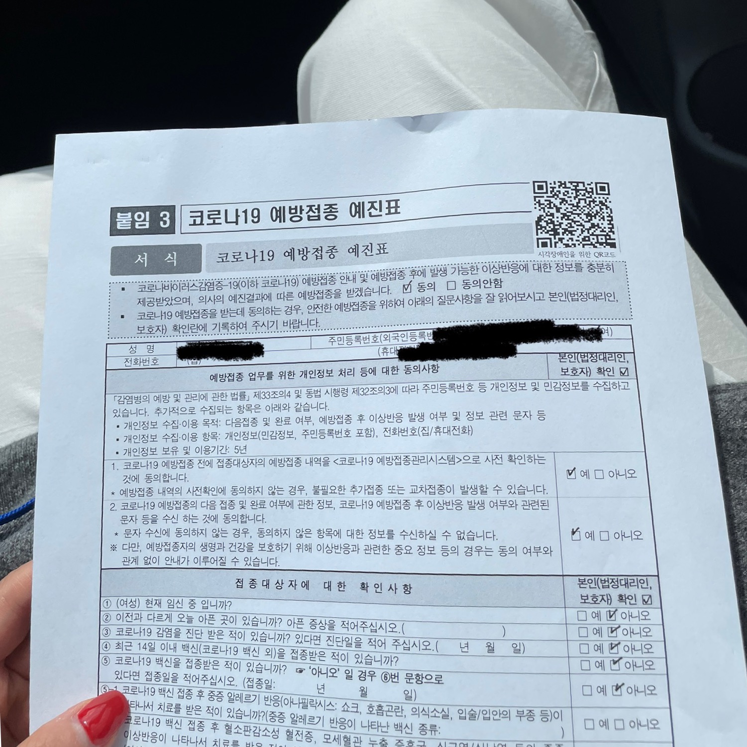 2. 신분증 및 예진표 확인