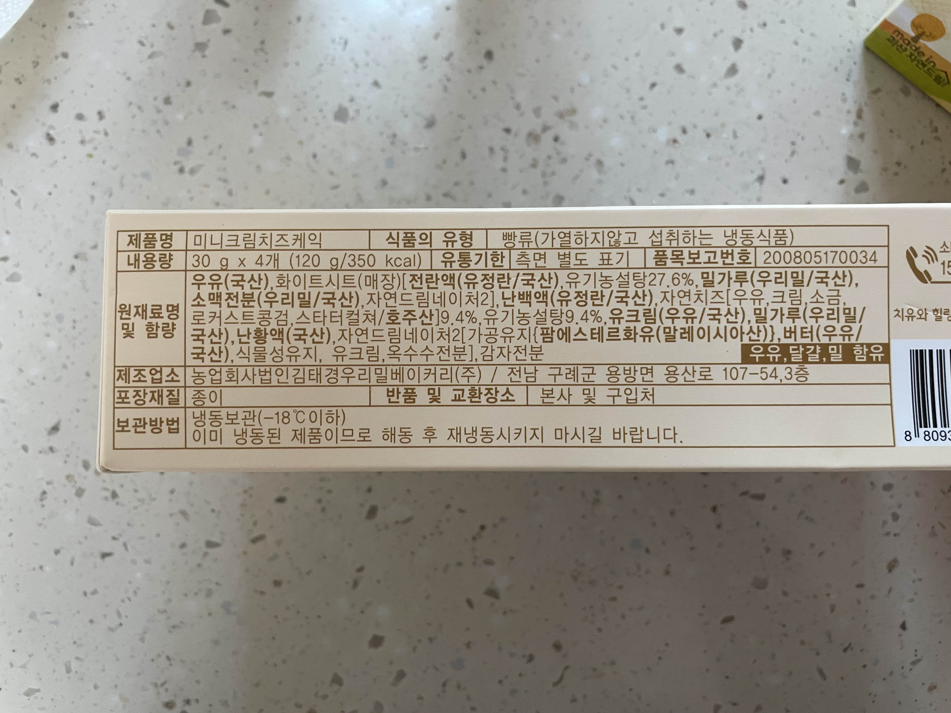 자연드림 미니크림치즈케익 성분은 대부분의 재료가