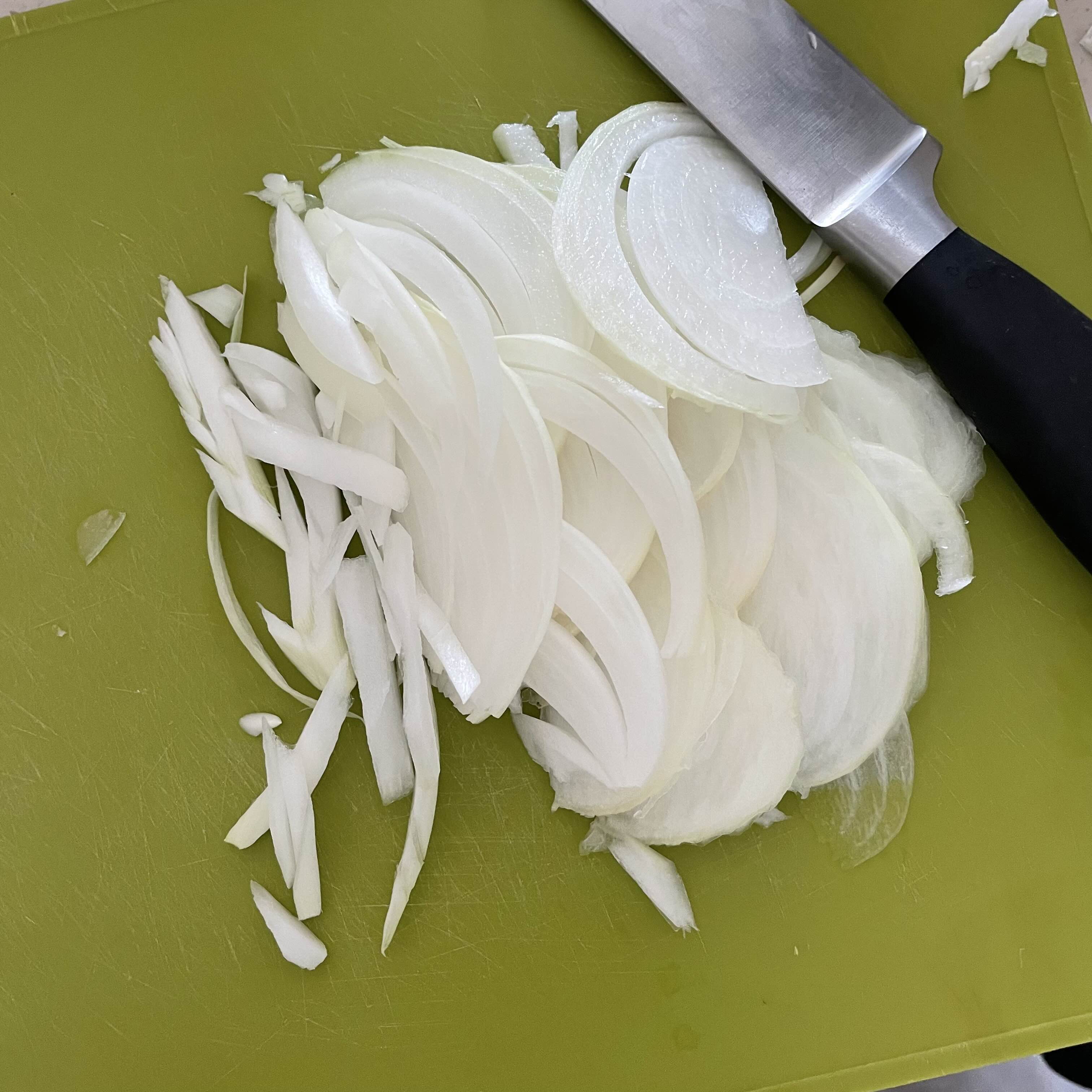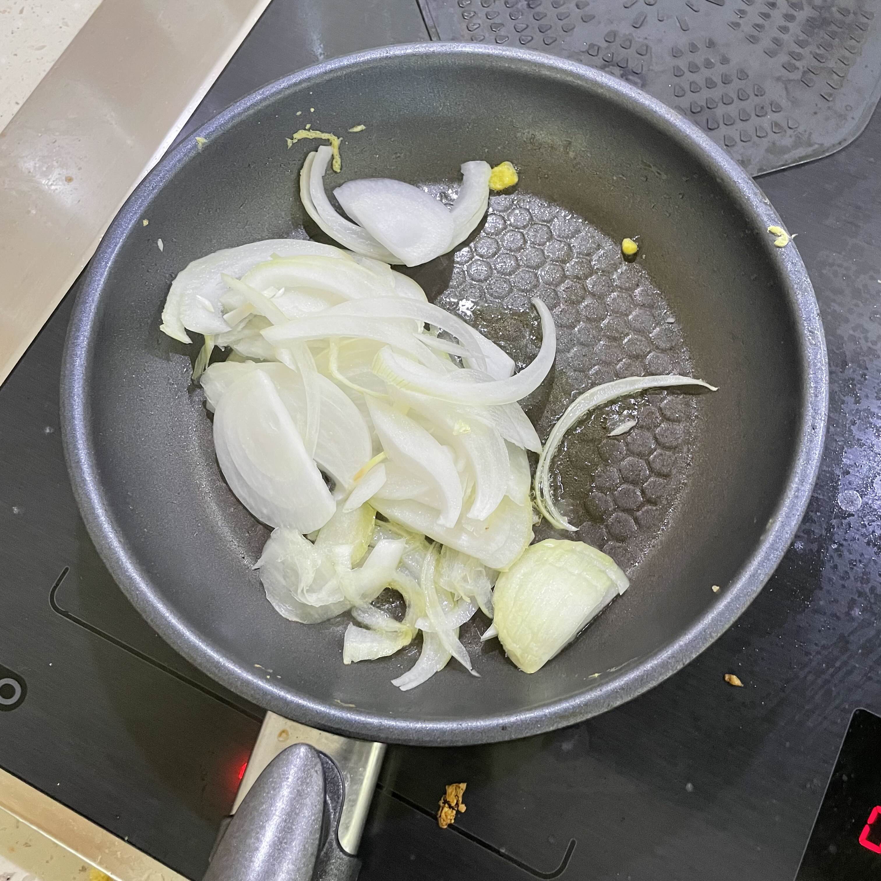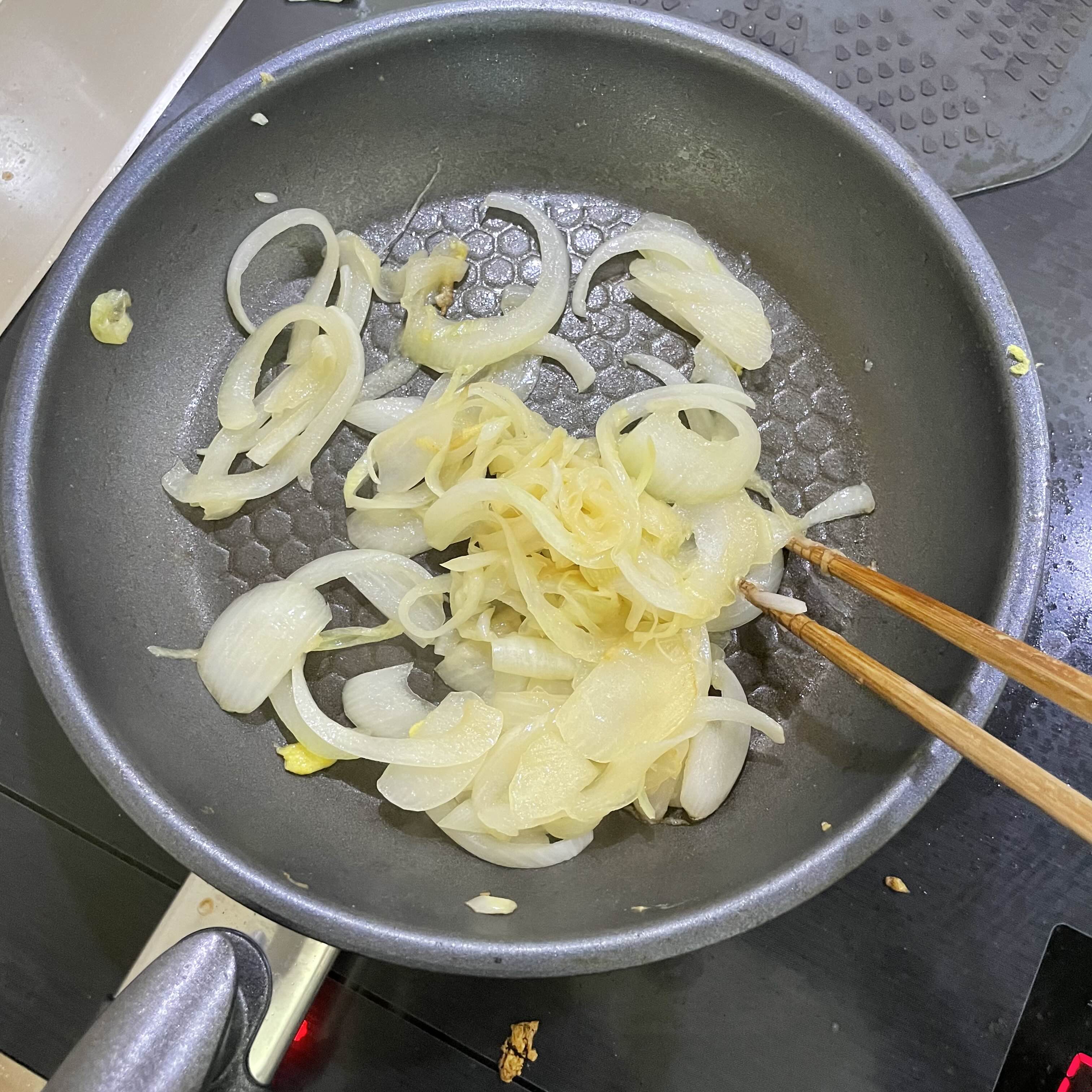 5. 팬에 기름을 두루고 양파를 숨죽을때까지 익힙니다.