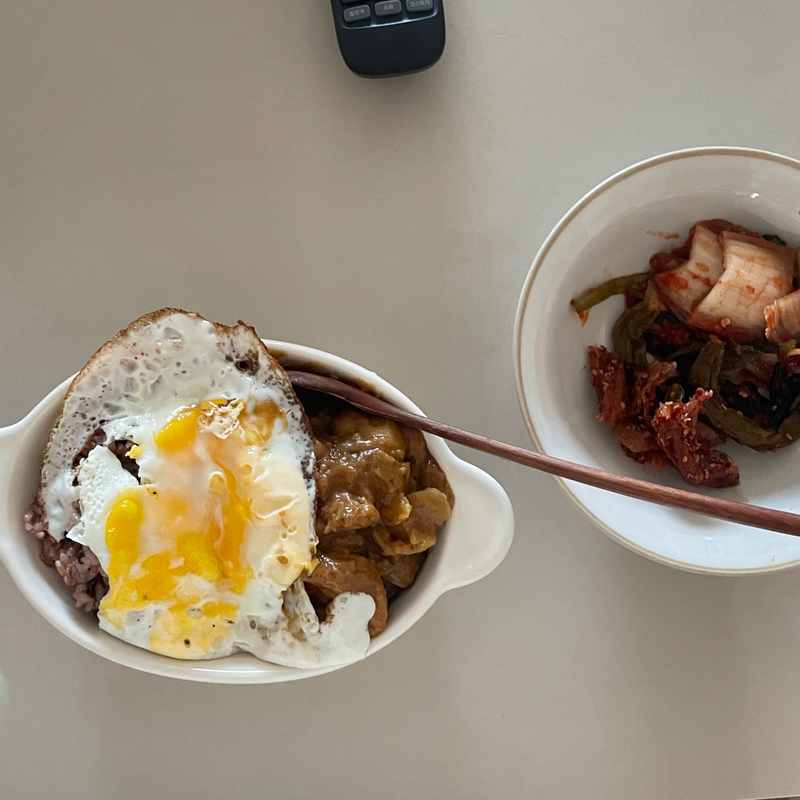 18:00 잡곡밥, 카레라이스, 계랑후라이, 김치