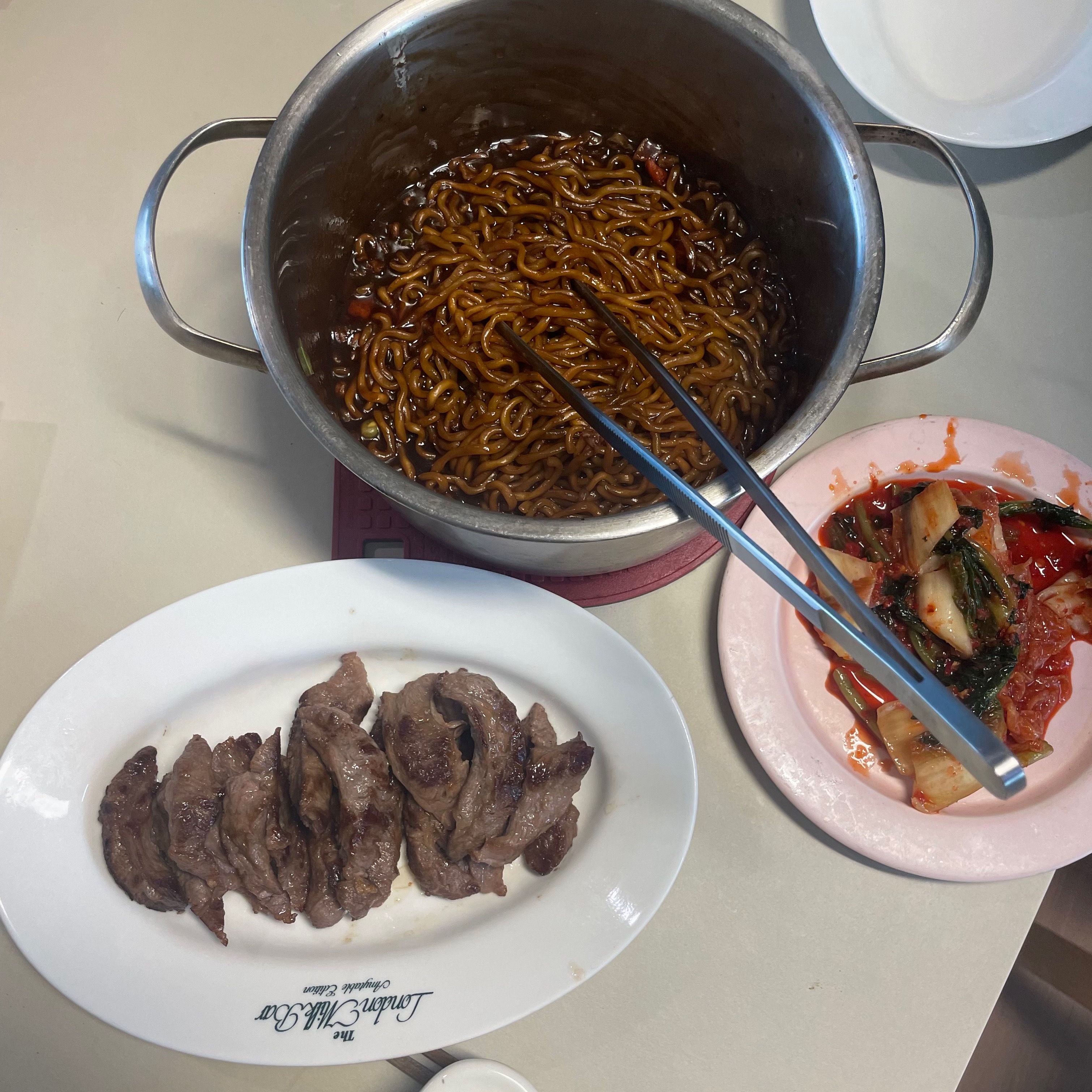 18:00 짜파게티 2/3개, 소고기 조금, 김치