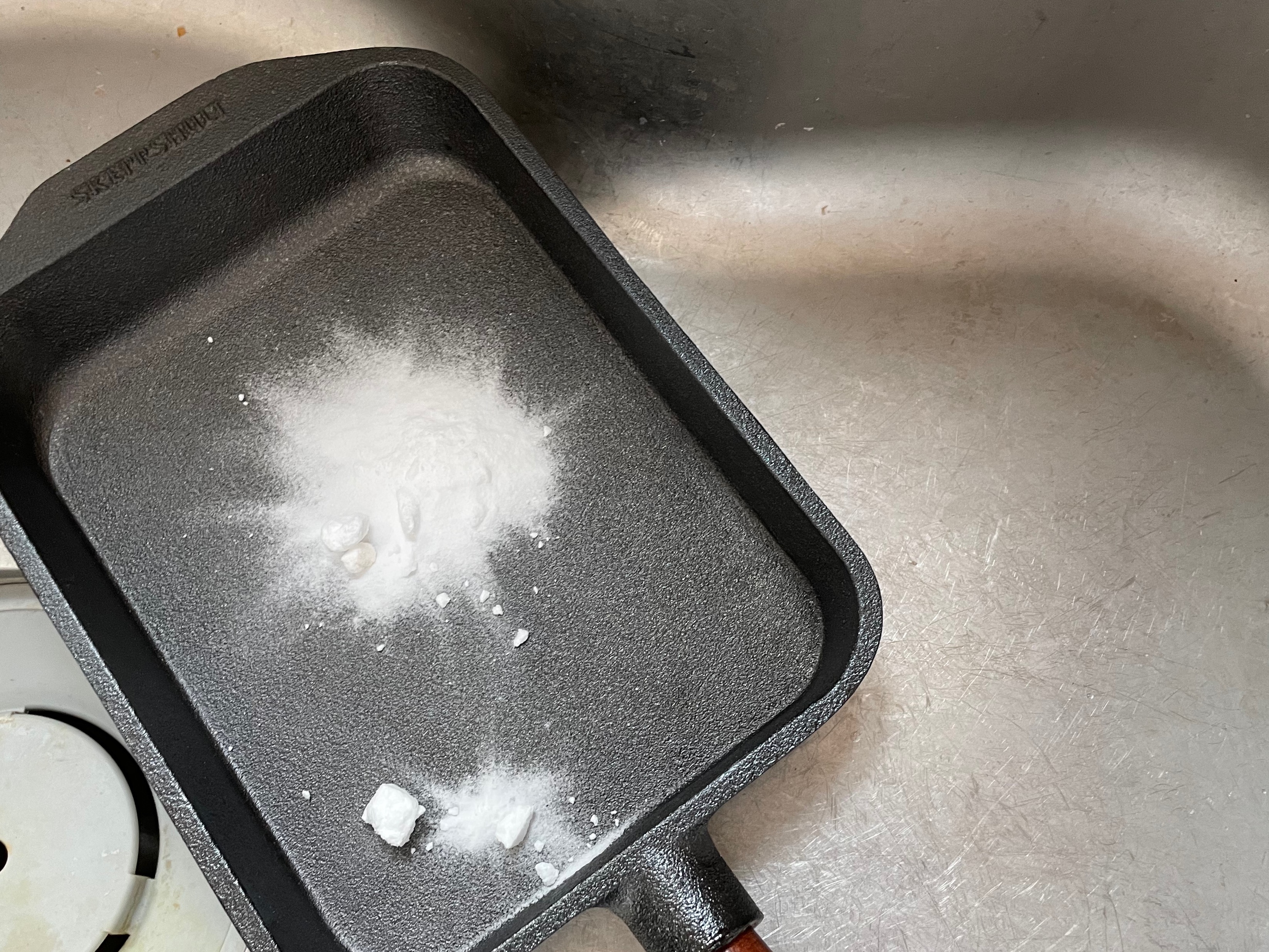 - 만약 팬이 많이 더럽거나 양념이 있는 요리를 했을 경우 ; 팬을 완전히 식혔다가 더운물과 베이킹 소다를 뿌려서 천연 세척솔로 찌꺼기를 걷어내고, 강불에 팬을 올려 물기를 날려준후 기름을 한번 덧칠하여 보관한다.