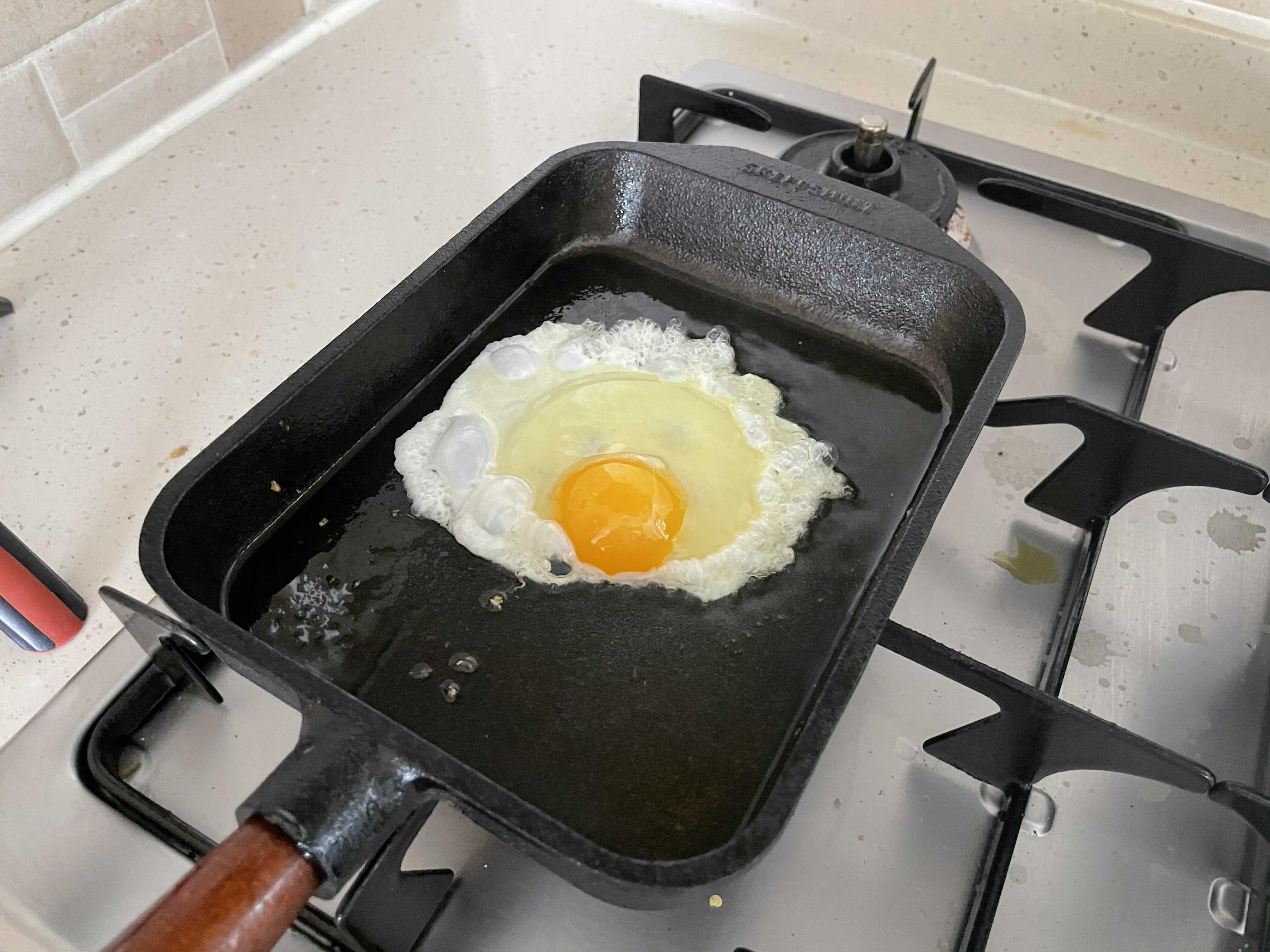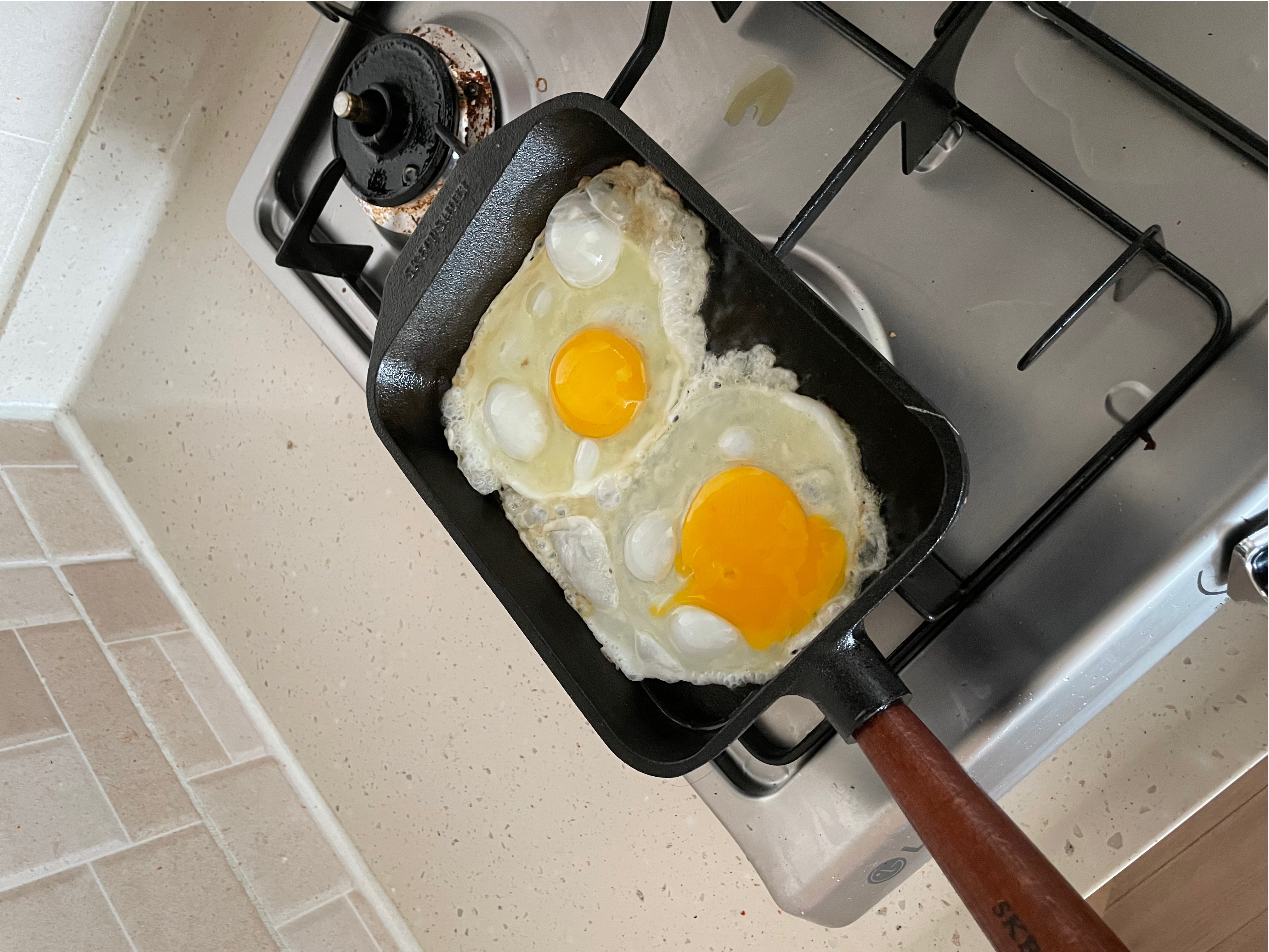 3. 시즈닝이 다 된 것 같으면 계란후라이를 해본다. 들러붙지 않는다면 성공!!!