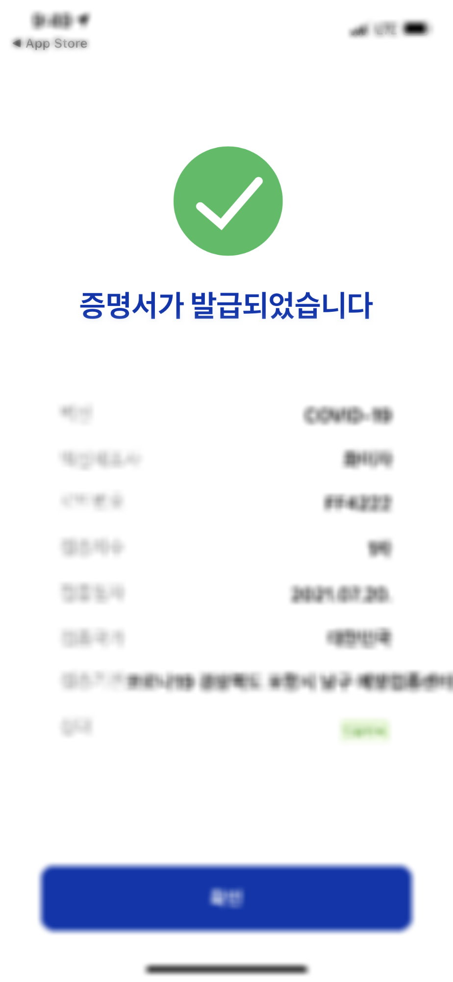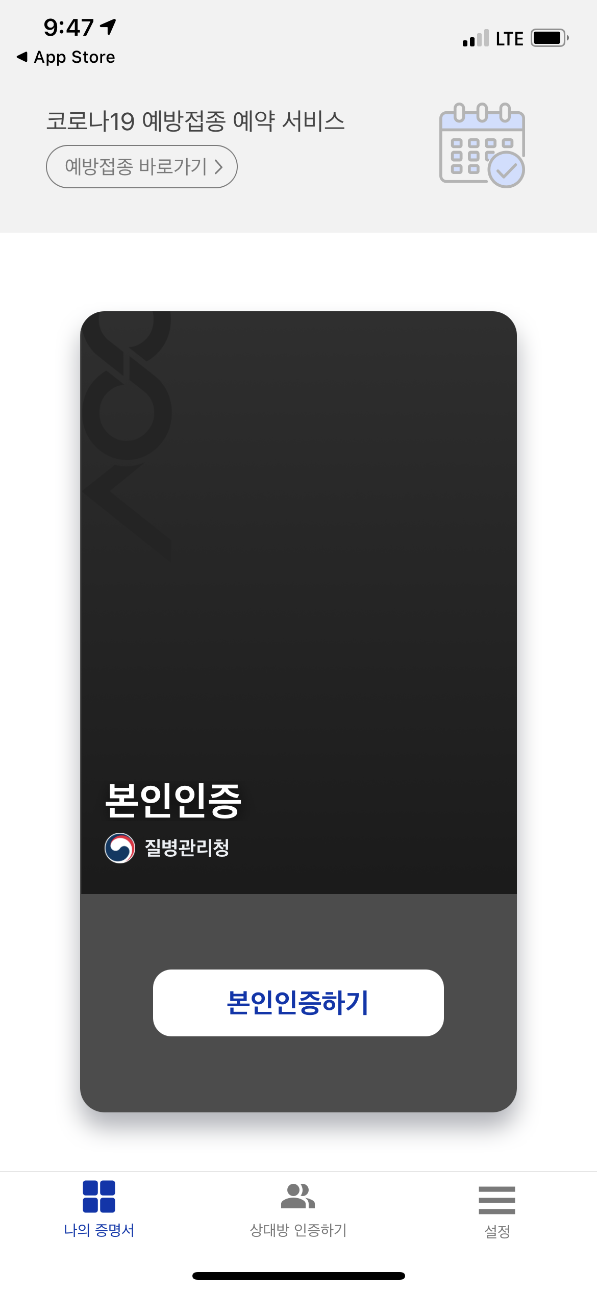 예방접종 완료 후, 어플다운하고 본인인증 하면 간단하게 증명서를 발급할 수 있다.