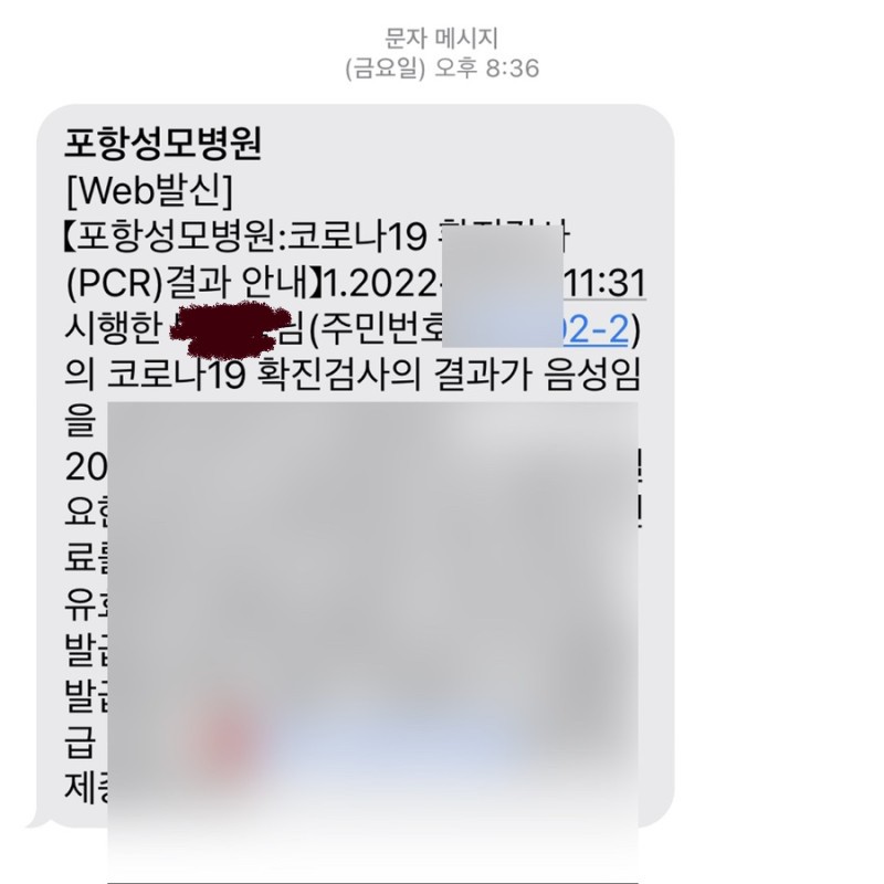 당일 저녁 8시 30분, PCR검사 음성 통보.