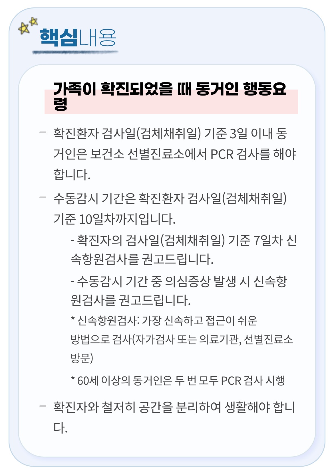 코로나 오미크론 확진자 동거인 가족 행동지침, PCR검사